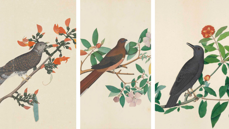 Commissioned by The East India company in the 17th Century, these wondrous collection of paintings use the techniques of Indian miniature painting whilst combining them with the style of Western bird studies.