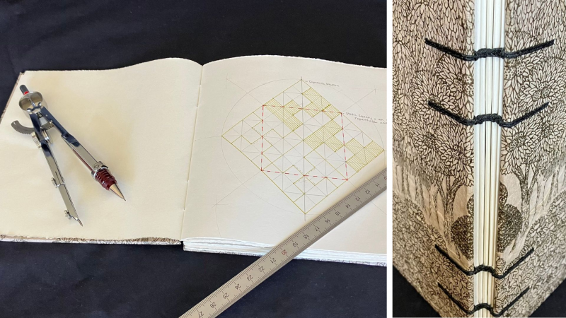 In this class you will learn how to create your own unique journals or sketchbooks using the coptic style binding, one of the oldest Western bindings. Student will make a one-of-a-kind book, learning the construction from scratch, including how to make a text block, create your own book covers, and sew a flat-lying spine. Student will walk away from this class with greater knowledge about the history of this binding style and obtain the skills to make more on your own book.